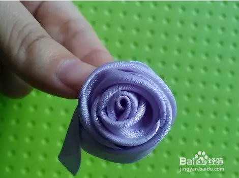 丝带可以稍长些,便于掌握花朵最后的大小,最后可把用不完的丝带剪断。
