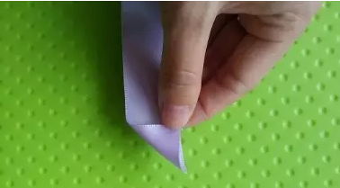 剪一个比花朵底部稍小的不织布(该图使用普通缎带剪的),并用热熔胶将其和花朵底部粘合