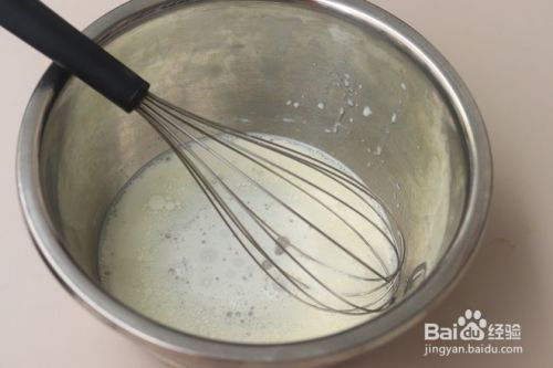 牛奶加玉米油混合,搅拌1-2分钟,乳化。