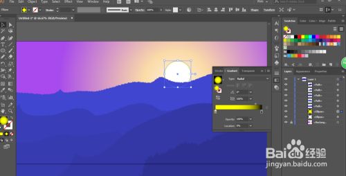 椭圆工具绘制两个圆形,调整为渐变颜色。