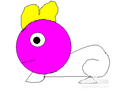 小兔子画好了,要给它涂上漂亮的颜色才更可爱呦,首先呢给它的长长的耳朵涂上漂亮的黄色: