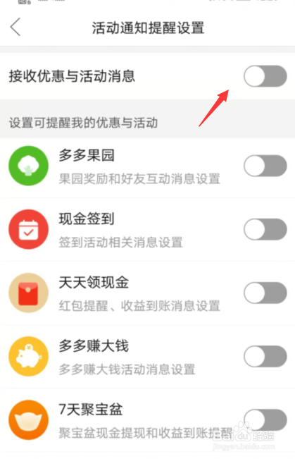 下一步,点击关闭接收优惠与活动通知,之后拼多多桌面红包就不会出现了。