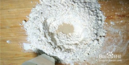 面粉中间挖个洞,发酵粉放中间