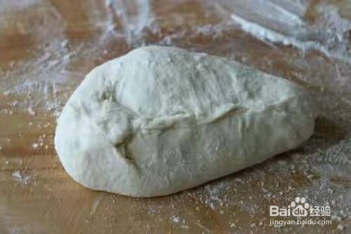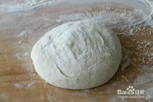 饧到时间,面板撒匀面粉,将面团移到面板上轻柔几下,让整个面团外表沾上面粉。