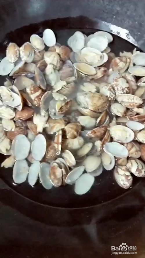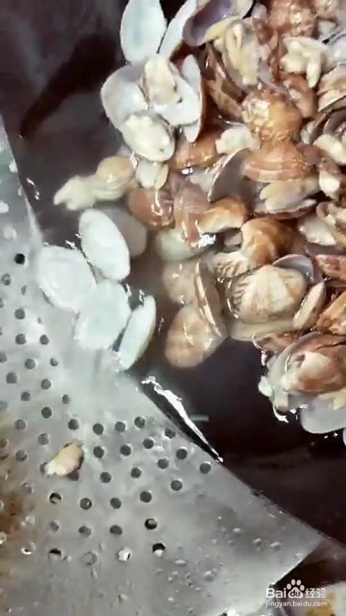 将洗净的蚬子放于热水中,煮两分钟后,捞出。
