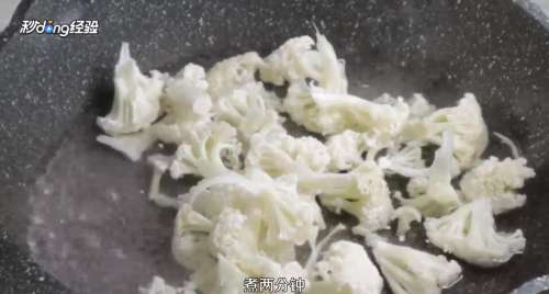 2起锅烧水,水开后放入洗净的花菜煮两分钟,捞出沥干水分。