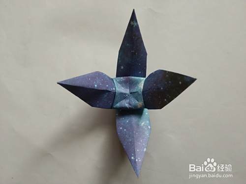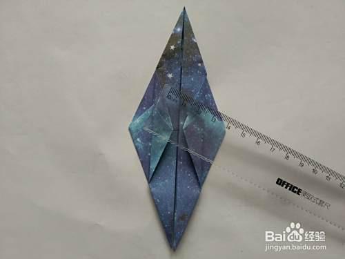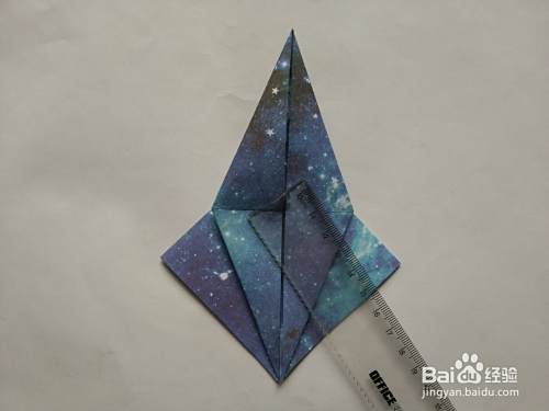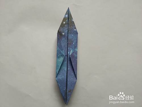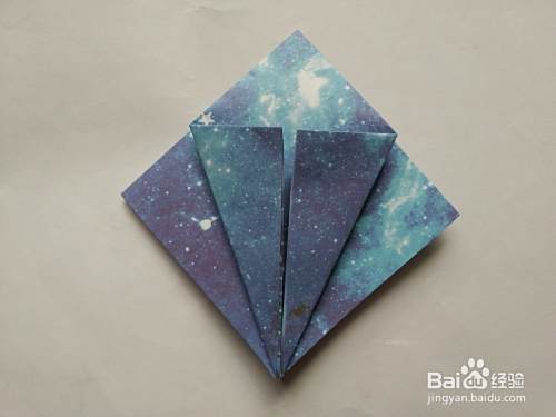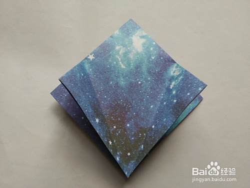 将下面的图形向上折,背面也同样折法,之后从中间撑开。