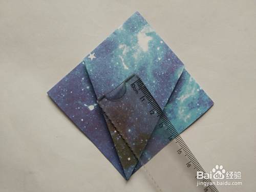将中间的角两边对折,背面也同样折法,之后将图形翻面。