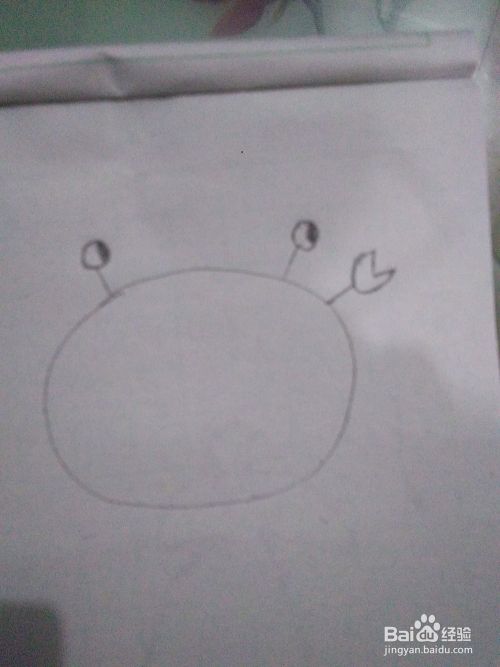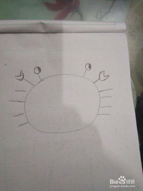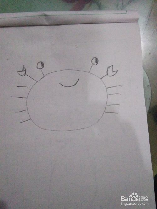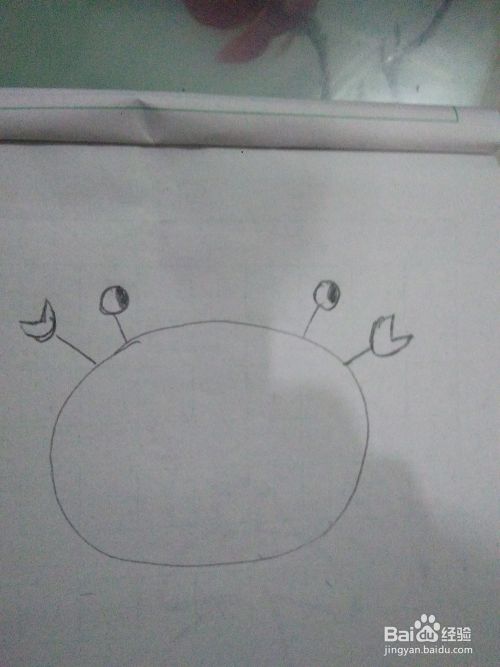 在椭圆的上半部分画一个朝上的半弧。作为大螃蟹的嘴巴。完成