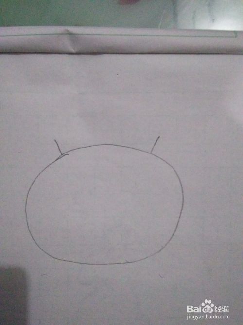 在眼睛的两侧在画两条竖线,在竖线上画上半圆,以<封口。作为他的前爪