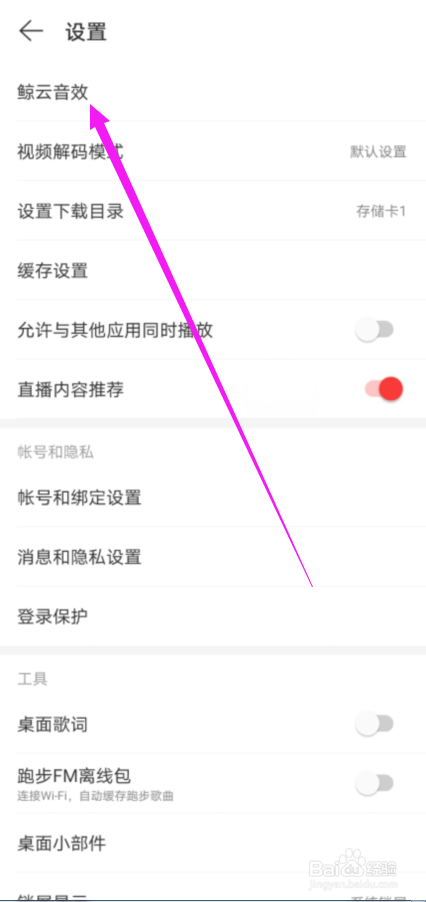 在设置页面中,我们再点击进入【鲸云音效】设置,如图所示。