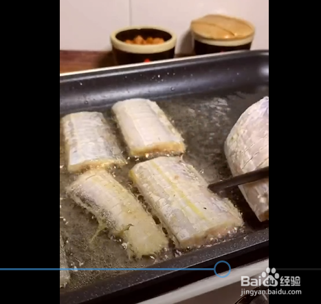 第2步,起锅烧油放入带鱼,开大火煎炸,煎至一面焦黄之后再翻面,全部煎好后就可以出锅了,香煎带鱼完成,你学会了吗?