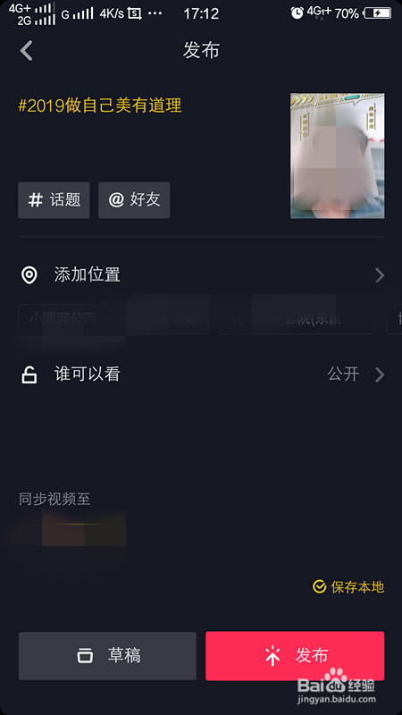 我们添加好奋斗的音乐开始拍摄,拍摄完毕后,点击下一步,在左上角输入做自己的话语,点击发布即可发布成功。