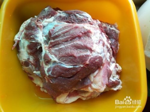 压熟后将羊肉冷却,可以看到有白油凝固,用小勺将白油刮除,将羊肉切薄片即可;