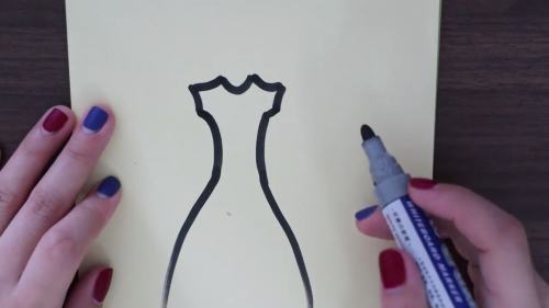 用小弧线画出胸部的褶皱,裙子简笔画就画好了。