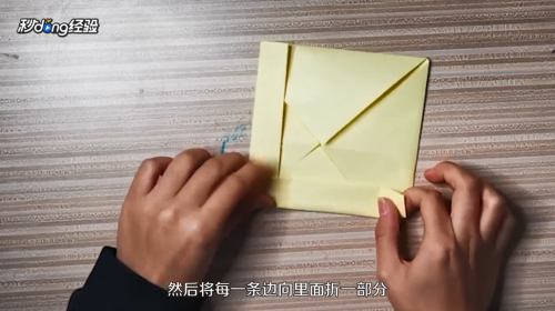 然后将每一条边向里面折一部分,接着将每一条边立起来。