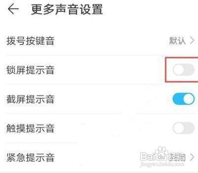 进入更多声音设置界面,将锁屏提示音开关关闭即可。