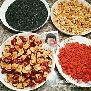 所有辅料准备好就可以熬了,黑芝麻买炒熟的或者自己炒,当然,要掌握火候,不然一不小心炒煳就不能用了!