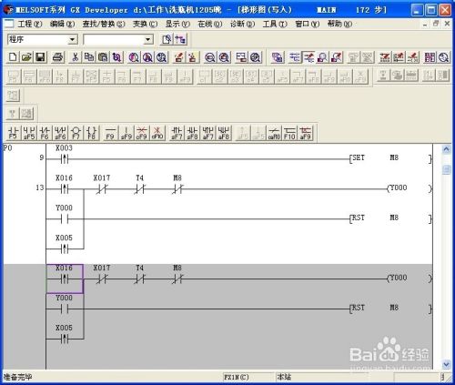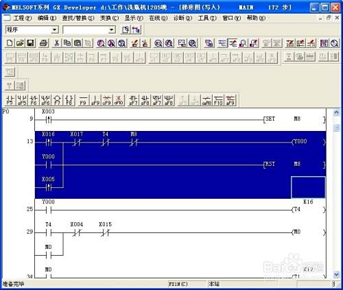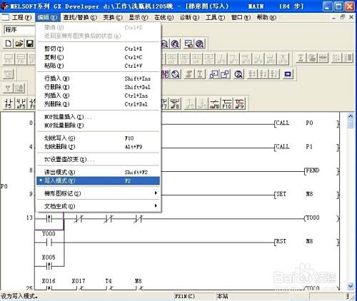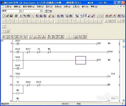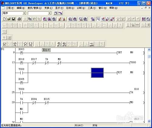 如果要对程序进行修改,这时程序一定要处于写入模式,查看程序是写入模式还是监控模式最简单的方法就是看光标是不是蓝色填充框,如果是蓝色,则是监控模式。
