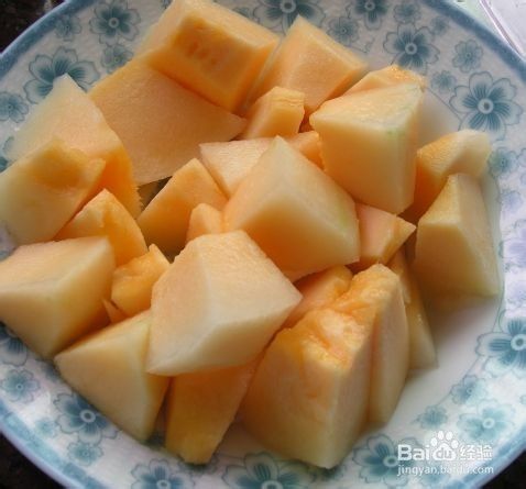 哈密瓜洗净去皮,去籽,切块。