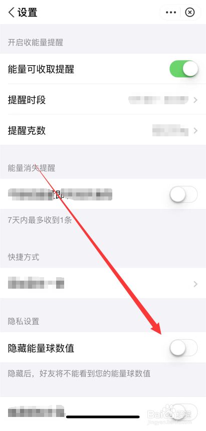 在设置菜单中将隐藏能量球数值的滑块拖至右侧即可。这样好友就看不到自己的能量球数量了。