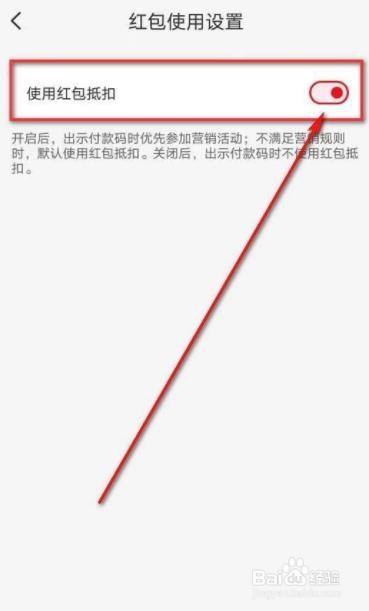 将“使用红包抵扣”旁的小滑块点亮即可开启。