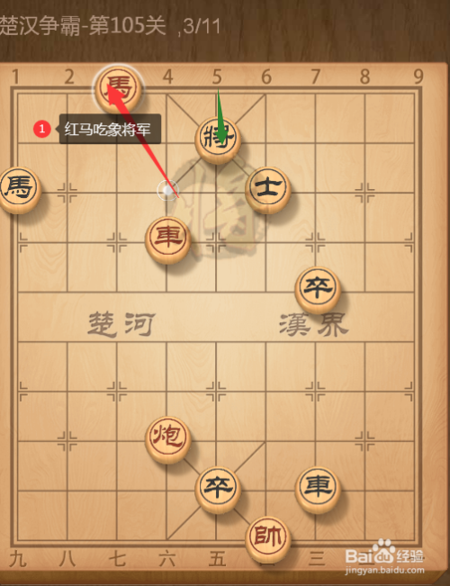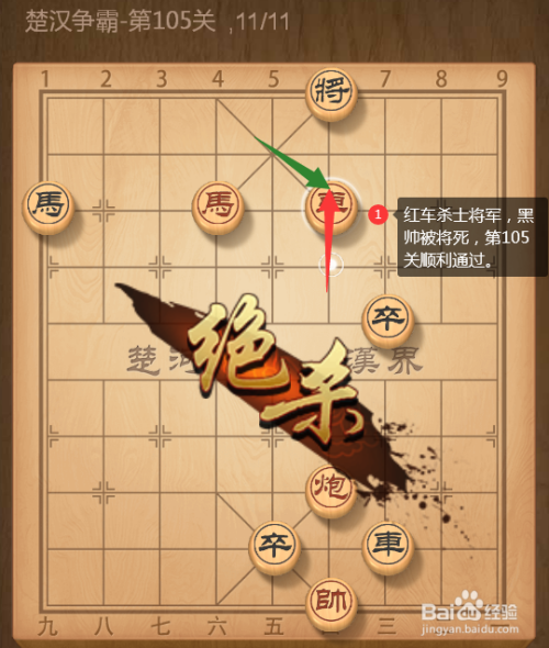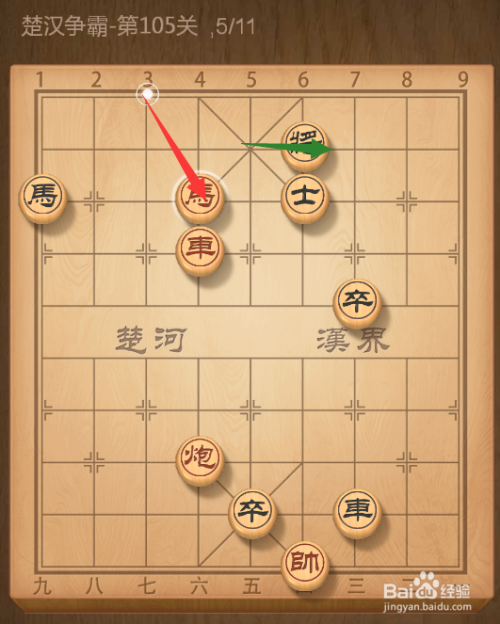 第105关,通关共需11步,这一关的难度还是很大的,因为黑士已经控制了红帅,只要黑车落下一将,红方就输了,所以要想通关就得不停的将军,小伙伴们请跟着我下面的图上步骤走棋。