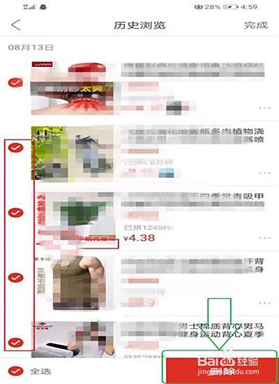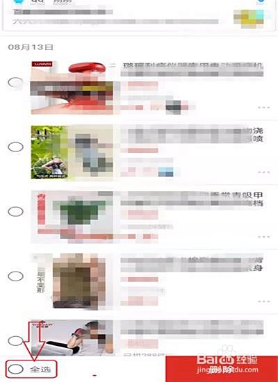 然后点左下角的【全选】,点【全选】之后,所有浏览过的商品前面的圆圈内都出现了一个对号,然后再点右下角的【删除】。