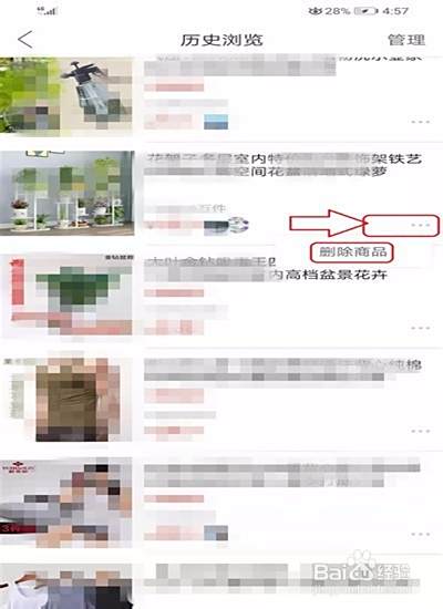 点【历史浏览】之后,就可以看到自己以前浏览过的商品了,如果想删除某一种商品,可以点该商品后面的三个横排的点,然后出现【删除】,点【删除】该商品就从浏览记录中消失了。
