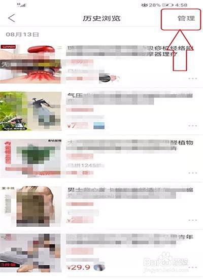 如果想全部删除历史浏览过的商品,点【历史浏览】之后,再点右上角的【管理】。