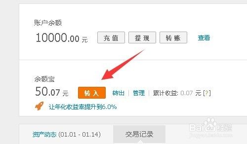 接下来在打开的“转账到支付宝”界面中,根据提示完成资金转入余额宝操作。