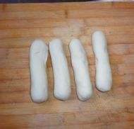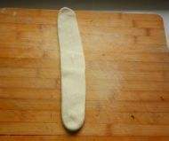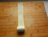 将揉净的面剂,擀成长条状。