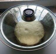 按压下去将面团摁扁,以利于擀制面饼。