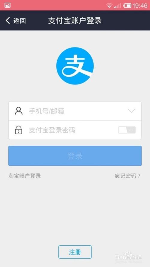 登陆支付宝账号密码,如果没有的话就注册账号与密码。