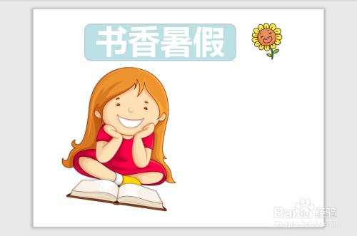 第三步,在“书香暑假”的大标题的边上画上一个向日葵的图案装饰一下
