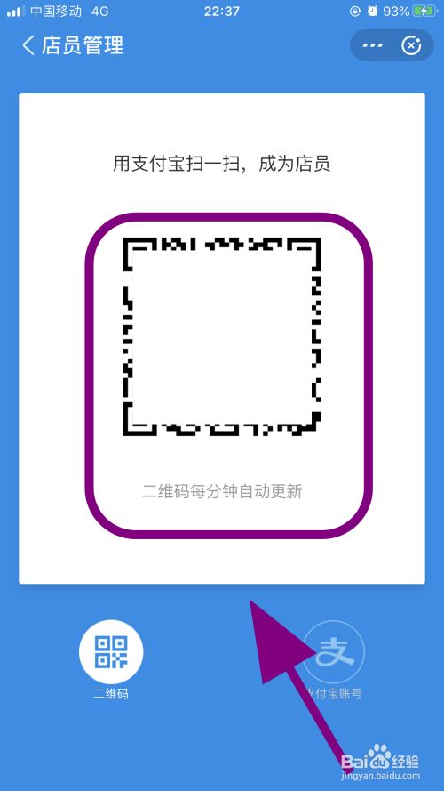 跳转添加店员二维码页面,用店员的支付宝扫描此二维码,接受邀请,就可以成功添加店员,完成;