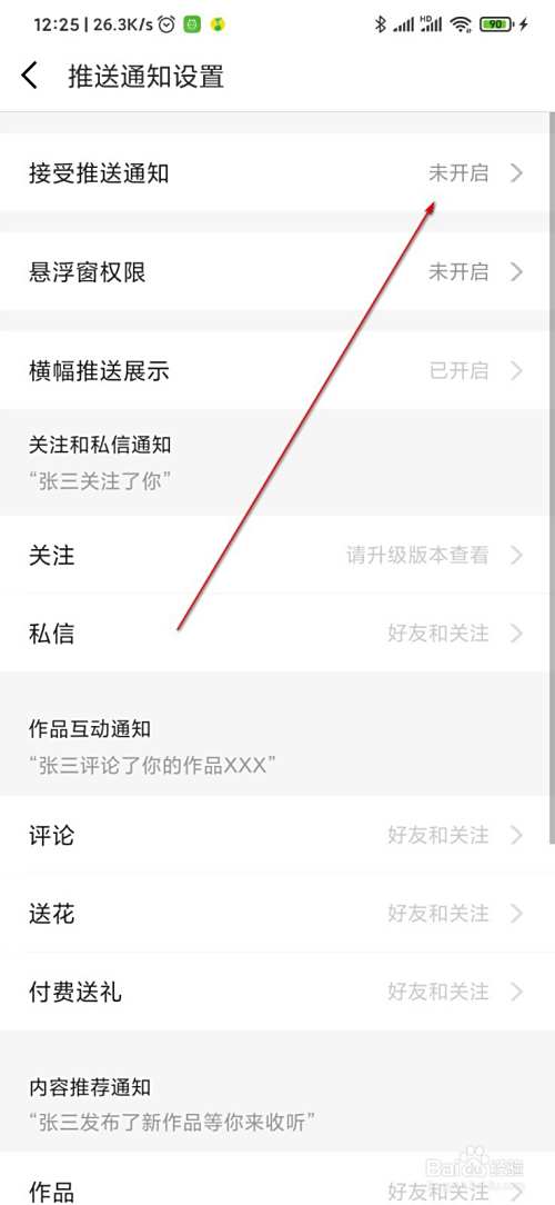 选择这里的推送消息设置,点击进入。