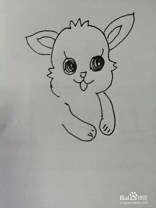 第三步,然后把可爱的小兔子的鼻子和嘴巴画出来,画法也比较简单。