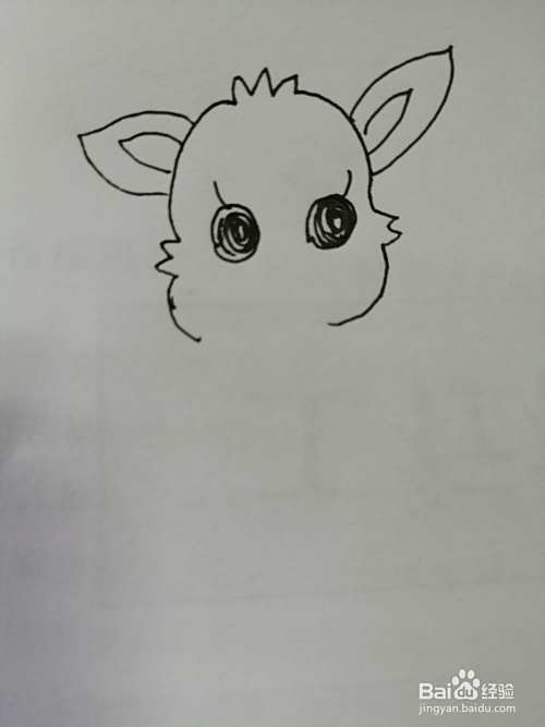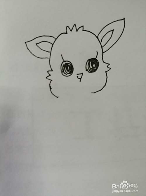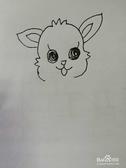 第二步,接着画出可爱的小兔子的黑色的大眼睛,小兔子的眼睛又大又亮。