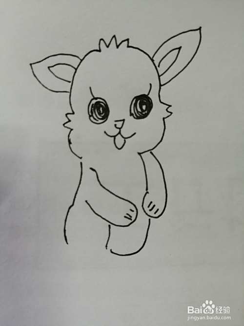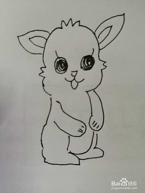 第五步,然后继续画出可爱的小兔子的身体,注意小兔子小肚子的画法。