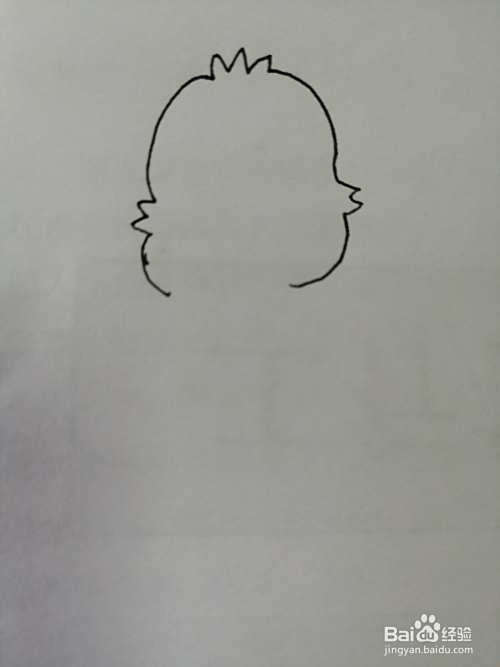 第一步,我们先画出可爱的小兔子的头,接着在头上画出两只可爱的小耳朵,画法比较简单。