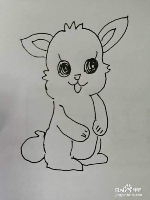 第七步,最后把可爱的小兔子的小尾巴画出来,简笔画可爱的小兔子就画好了。