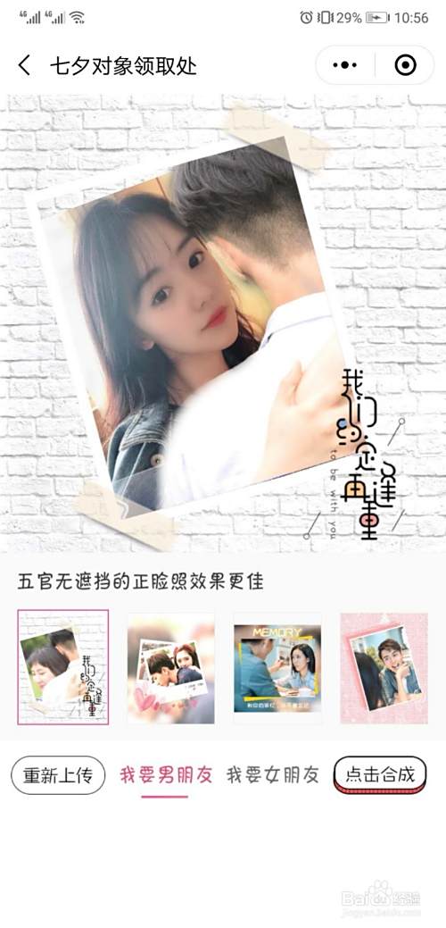 上传完成之后,就能够挑选自己喜欢的“男/女朋友”啦,如果自己上传的照片不合适,还能够手动调整照片的位置、大小、方向等