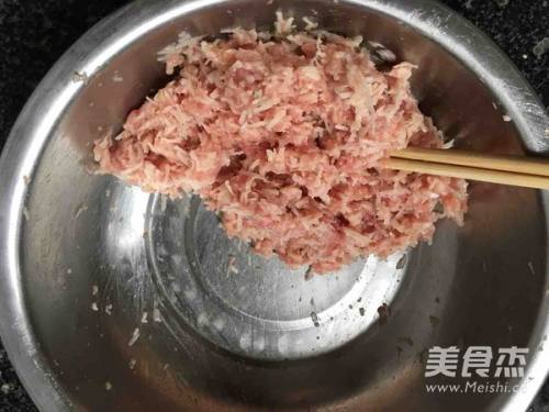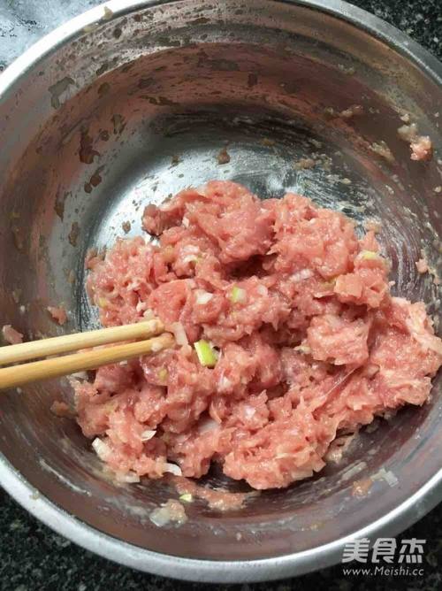 藕丝倒入拌好的肉馅中,搅拌均匀