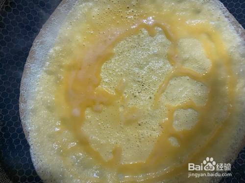 取平底锅或者不粘锅摊成蛋皮(如果不是不粘锅要加一点油,以免蛋皮摊裂)尽量摊大一点薄厚适中