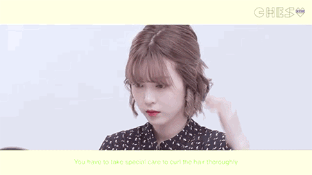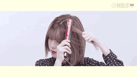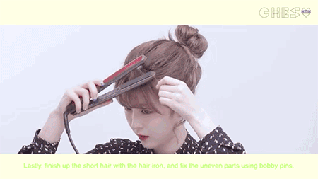 用卷发棒把前面的刘海和脸颊旁的头发烫卷,再把细碎的头发用夹子夹到耳后。
