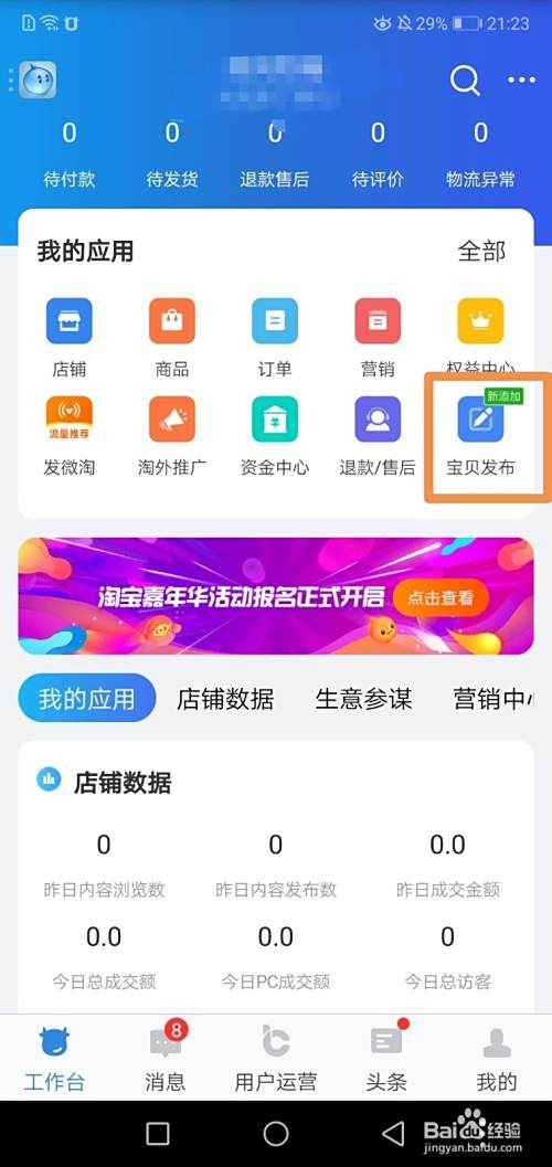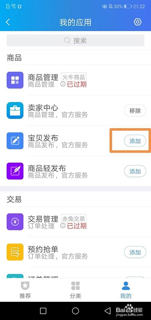在全部里面,我们找到宝贝发布点击后面的添加。