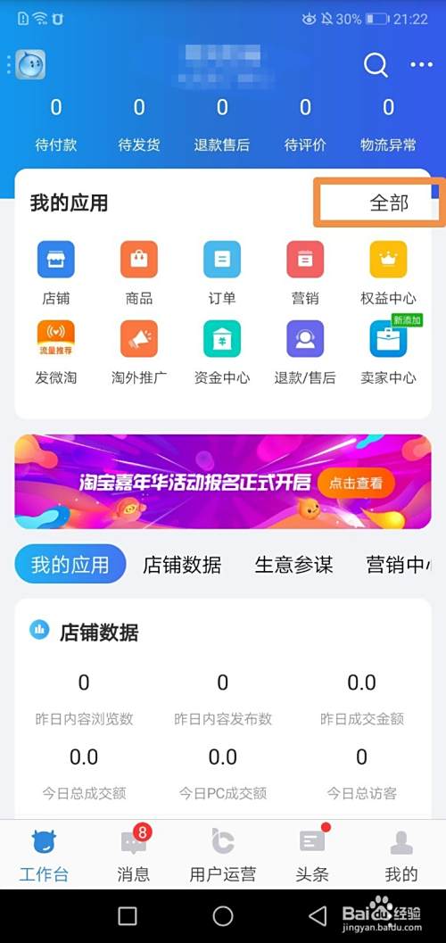 如果在这里找不到宝贝发布的话,我们点击全部。