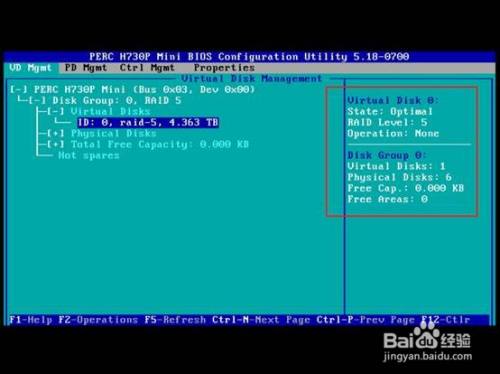 在VD Mgmt界面就能看到已经创建好的raid5,总的大小4.364TB。如图所示: