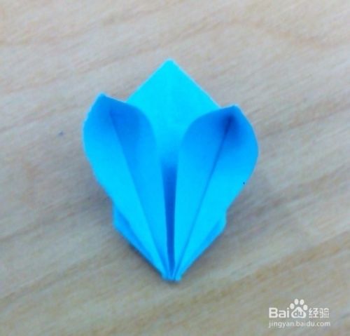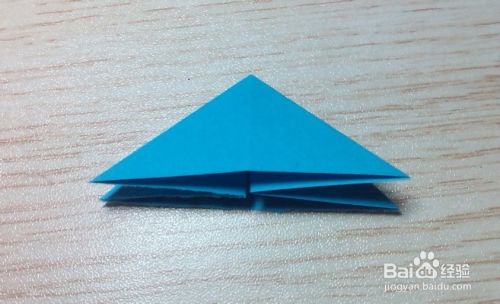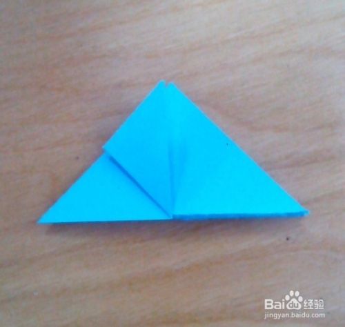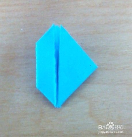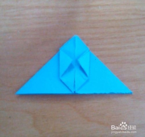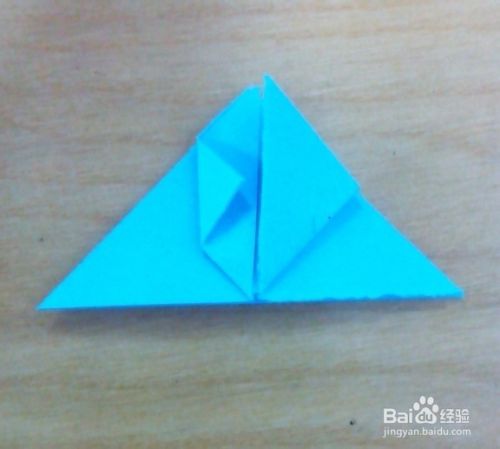 把顶角的第一层从中间向两边翻折分开,并分别插到上一步形成的两个小三角形内!效果如下!